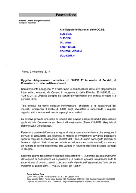 38 lettera di presentazione poste italiane consulente finanziario
