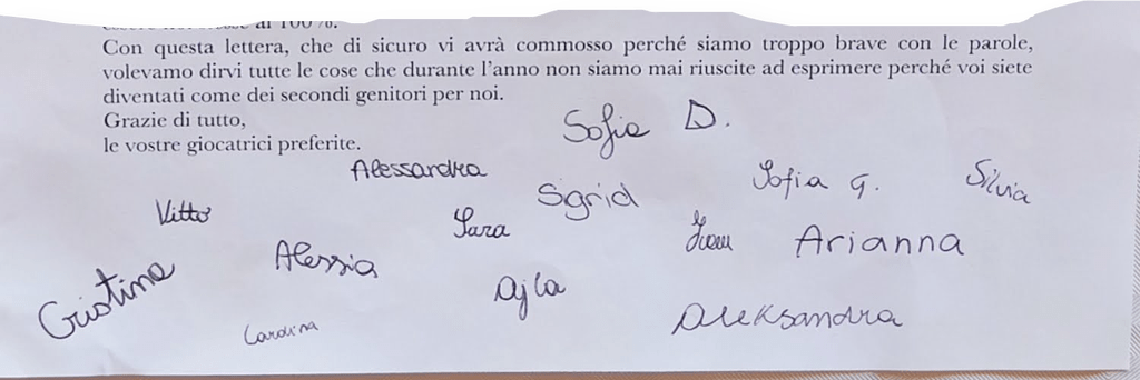 LETTERA DI UNA GIOCATRICE DI PALLAVOLO Oct 9, 2018 ... Palla Mia ! Il 6 Gennaio 2023 si svolgerà la 1° manifestazione festa della pallavolo femminile presso la palestra Leardi. L'evento,... Lettera di fine stagione - Maurizio Napolitano - Medium Quella che segue è la lettera di fine stagione che le ragazze della U14 del RotalVolley hanno regalato a mia moglie e me: i loro allenatori.